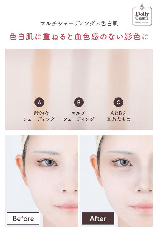 ・ブラウンカラーでは黄みが浮いてしまう白肌のシェーディングに。
